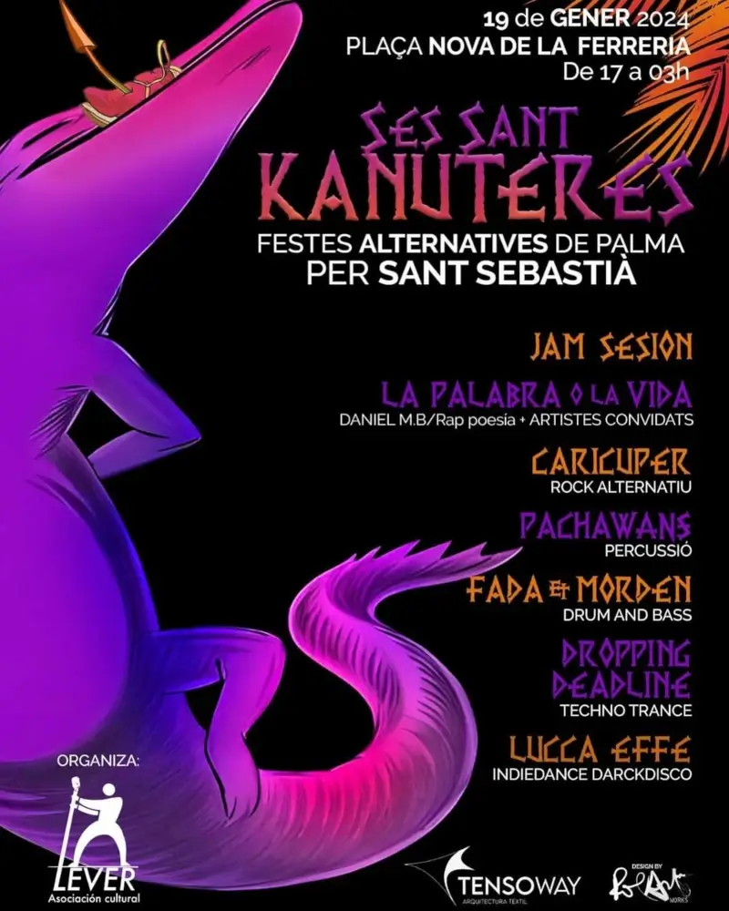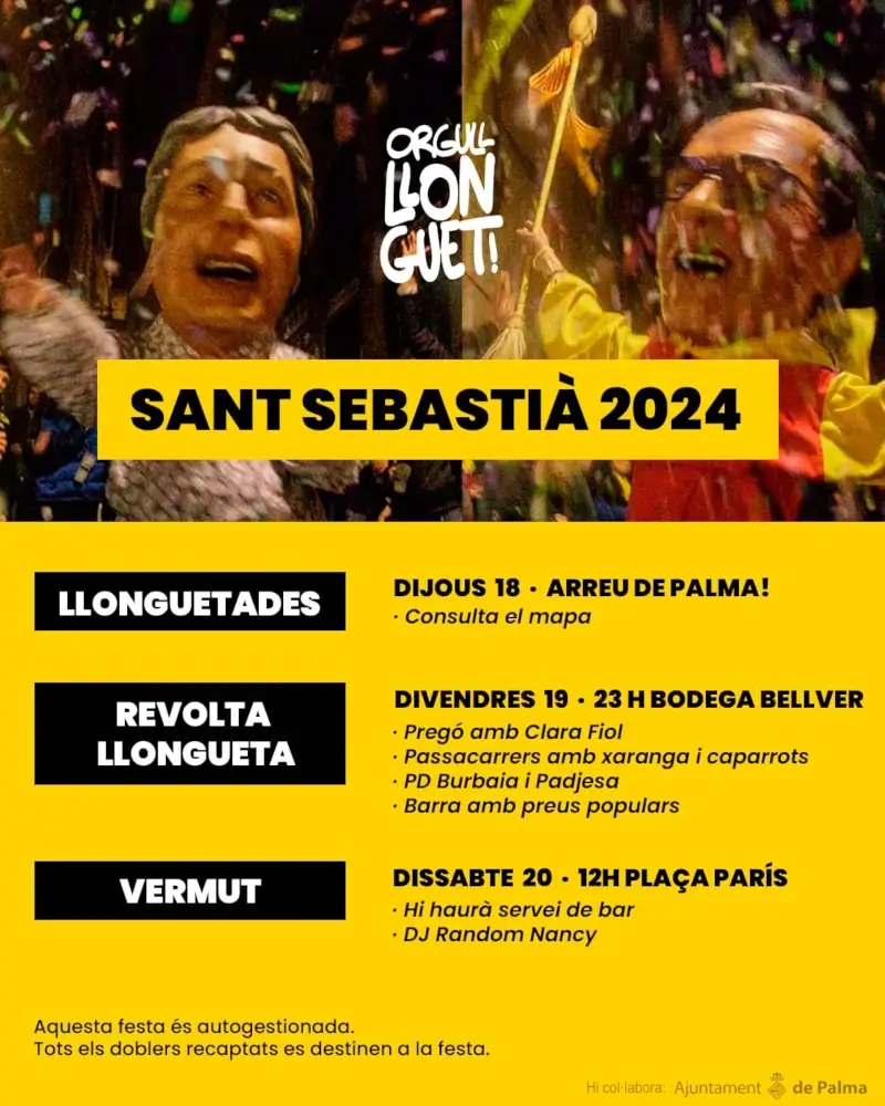 Nota: las celebraciones de Orgull Llonguet y Sa Obreria de Sant Sebastià no forman parte de Ses Sant Kanuteres, pero las hemos incluido para ofrecer un programa más completo de las Fiestas Alternativas de Sant Sebastià en Palma.