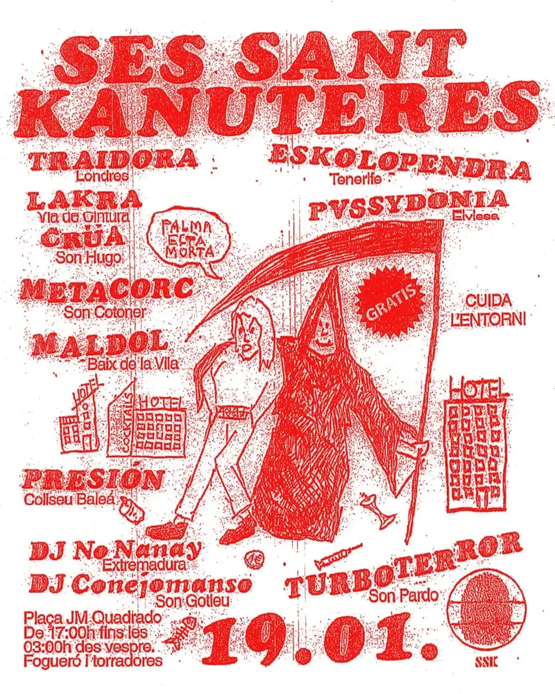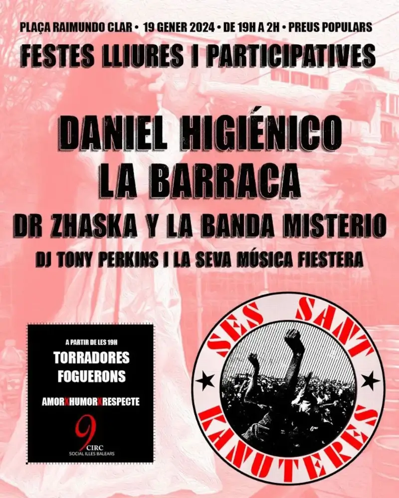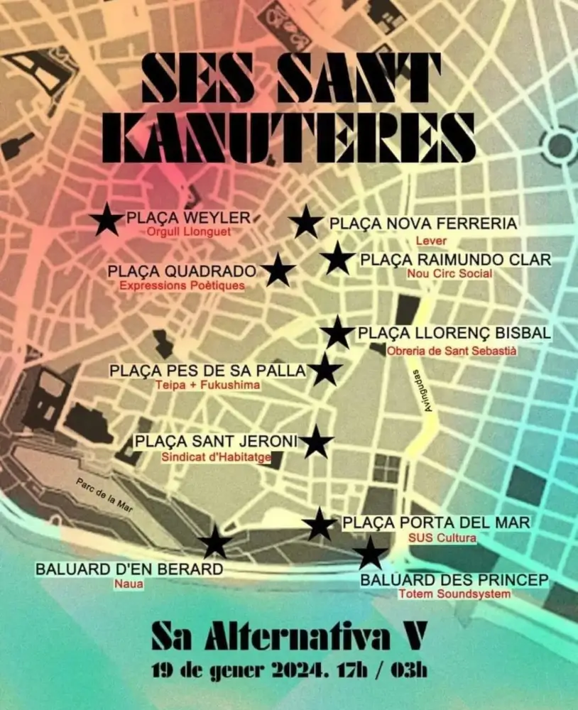 Desde 1996, en paralelo a la Revetla de Palma se organiza la llamada ‘Revetla Alternativa‘, una fiesta autogestionada, deudora del anteriormente denominado Sant Kanut, que en 2023 llevó el nombre de Sent Sa Bèstia y este año comparece bajo el apelativo de Ses Sant Kanuteres.