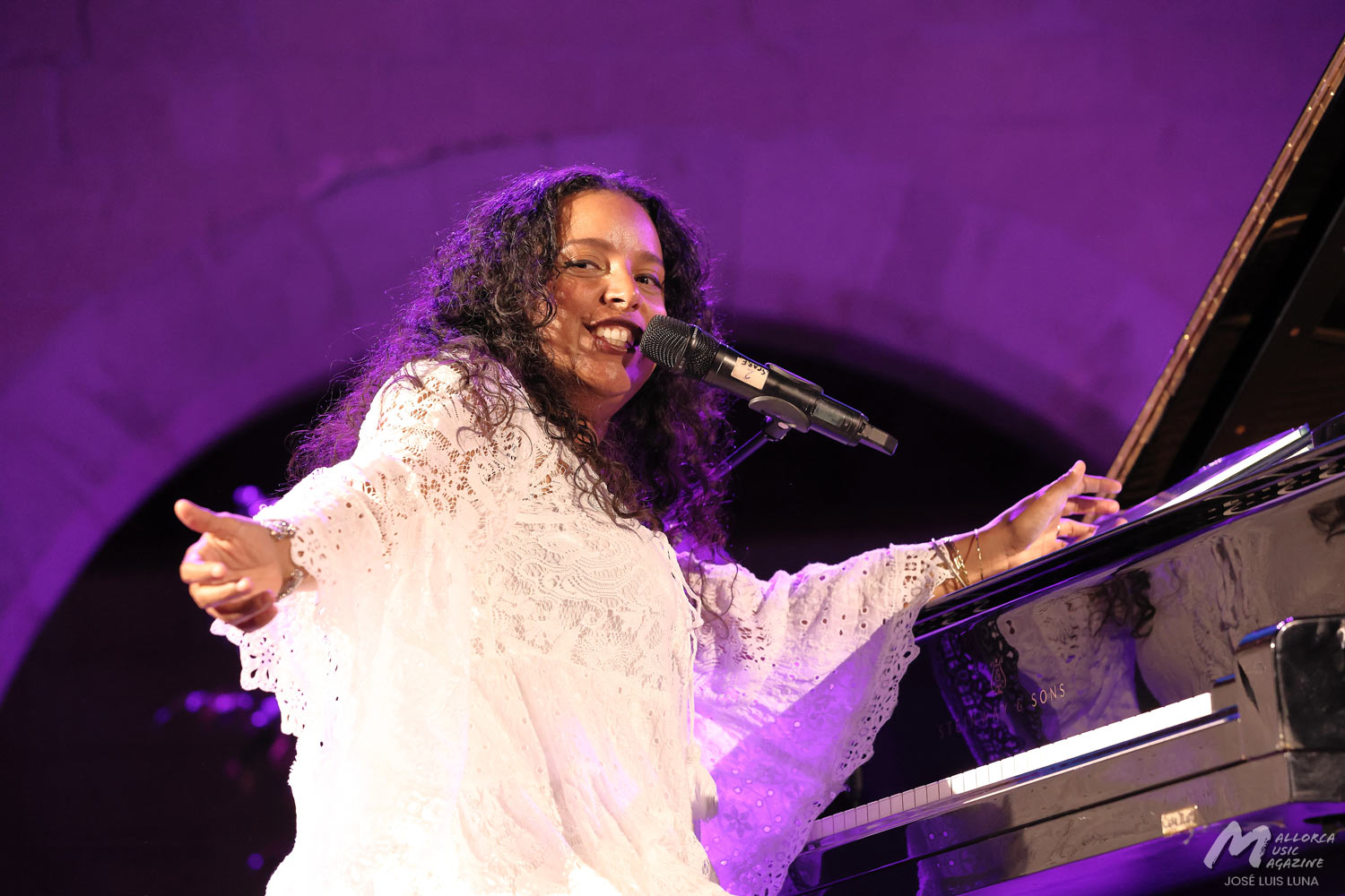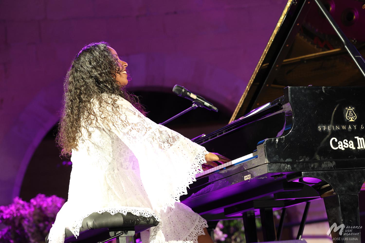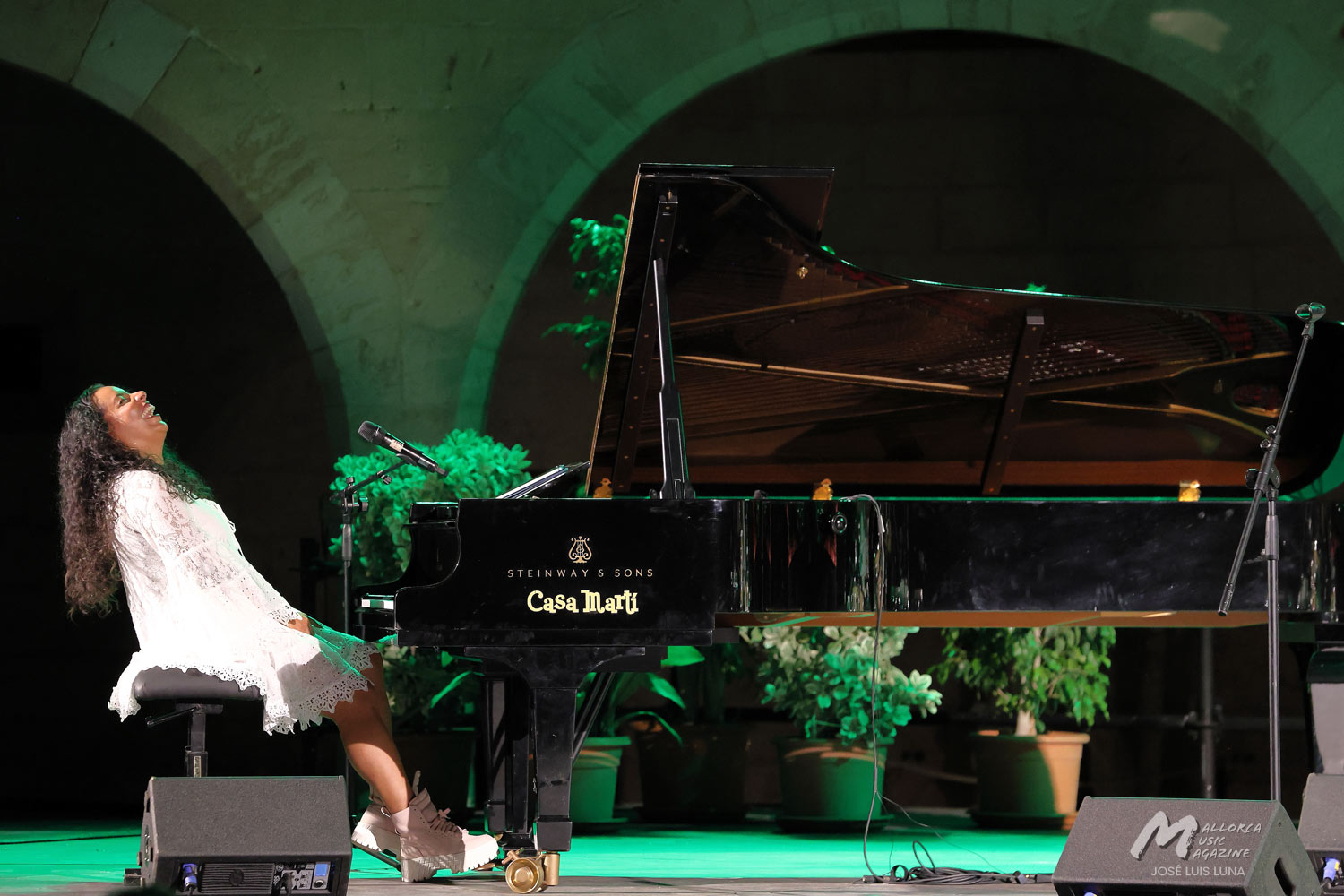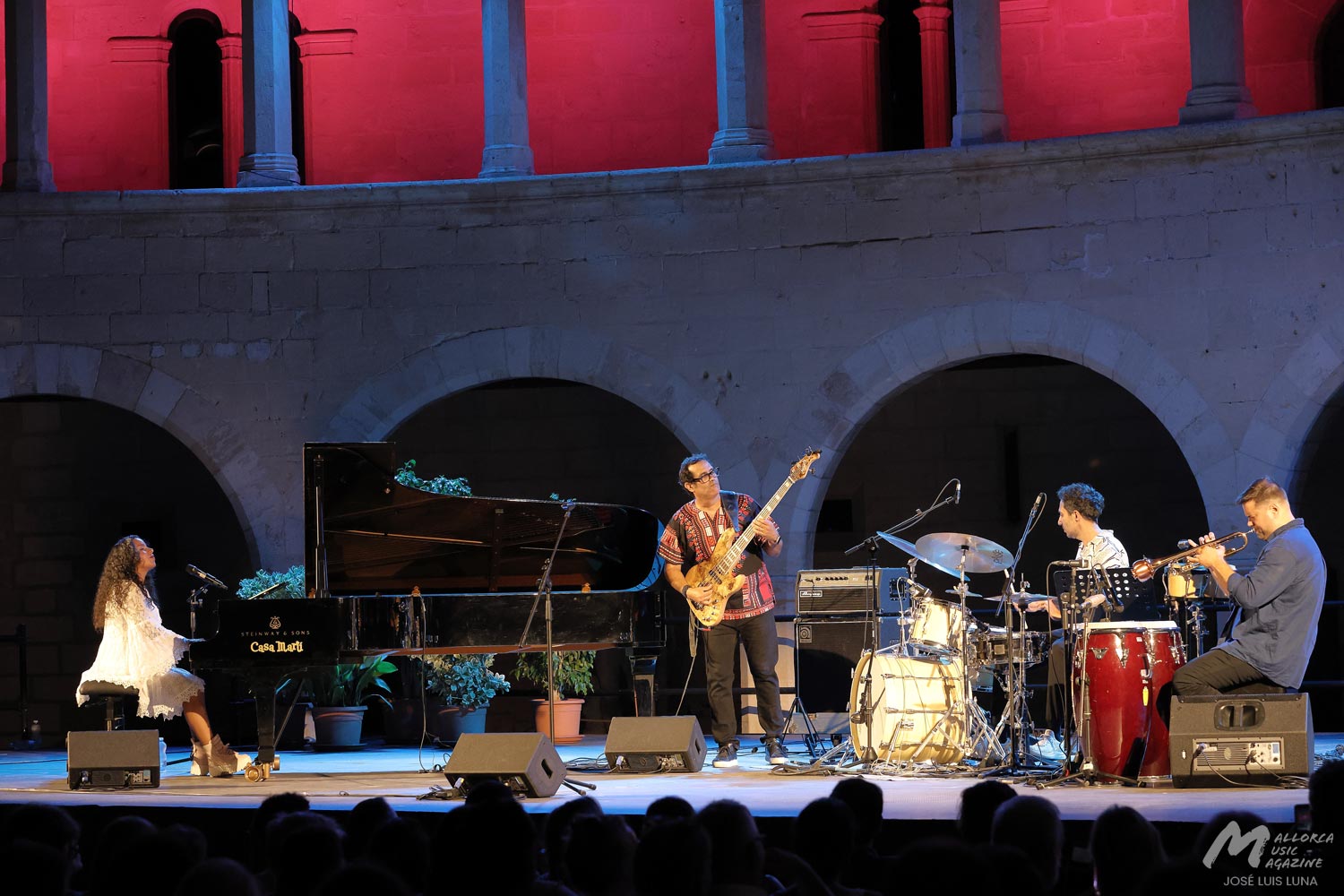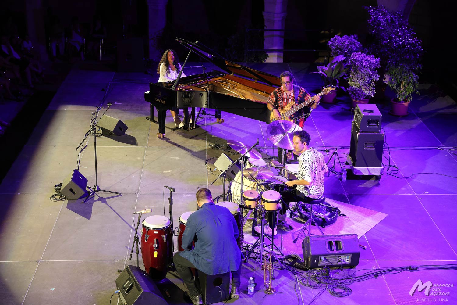 Tras arrancar con una intro al piano, continuó con un popurrí de tres piezas haciendo homenaje a reconocidos compositores nacionalistas cubanos como Saumell, Cervantes o Lecuona. Del toque de Glenda sorprende gratamente, además de su buena energía y amplia sonrisa, la velocidad que por momentos lograban alcanzaban sus dedos sobre el teclado. A pesar de tener unas manos pequeñas, como su estatura, estaban rebosantes de compás. Porque sin duda lo que más hubo fue mucho azúcar, como pregonan los más salseros. Sincronía y compás de toda la banda sobre las tablas, capitaneados por la destreza del toque de Martín, que manejó desde el viento con la trompeta con sordina y sus efectos y texturas jazzísticas, a la percusión entre congas, bongos y cajón flamenco. En varias ocasiones llegaron a dejar sus instrumentos y marcar el compás por palmas. Junto a Carlitos, como cariñosamente lo llamaba su compañera, el toque sutil de la batería del talentoso Fathi, músico afincando desde hace unos años en Mallorca que por momentos rezumaba compases de lo que más le gusta: el flamenco jazz.