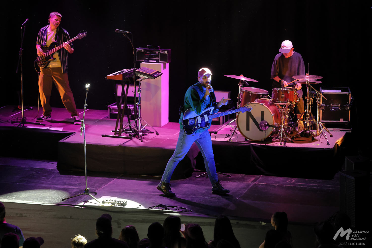Salen con liturgia, aciertazo ya clásico en su directo. Ademanes de hieratismo y concentración. Hasta hay un radiocasete en el escenario. Entonces, ¡play! Negre comienzan a tocar, lo cual siempre será noticia: esta banda que ganó de calle el Concurso Pop Rock de Palma 2023 asumió desde el primer minuto que un directo es un plus, un extra, un capítulo aparte, y que es sumamente primordial. Para escuchar música ya tenemos el móvil, para ver la tele ya está «La isla de las tontaciones» o cualquier guilty pleasure.