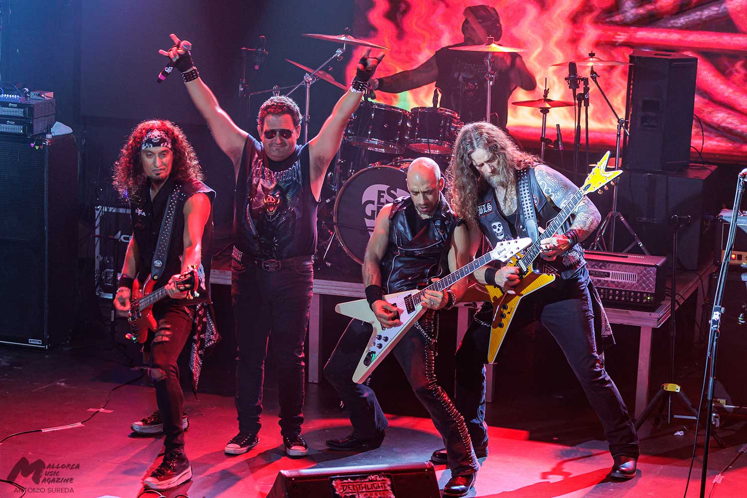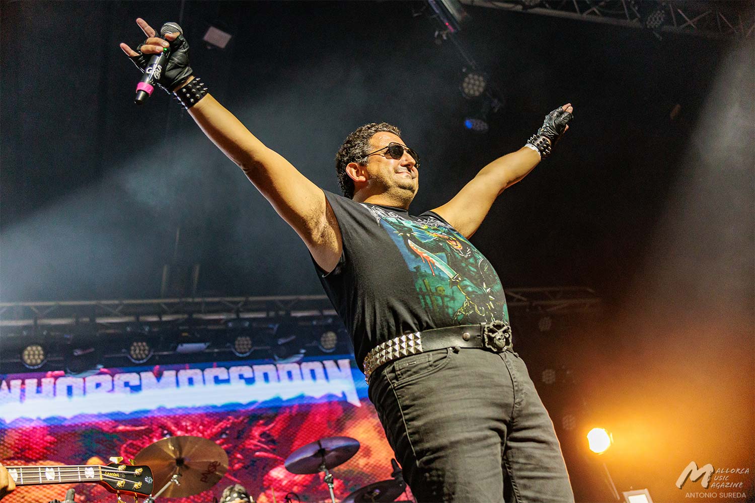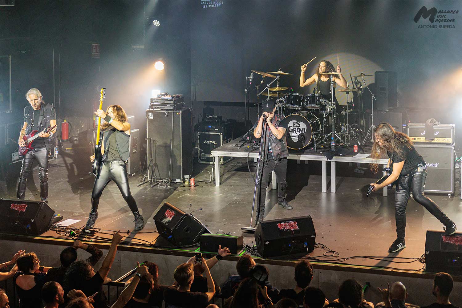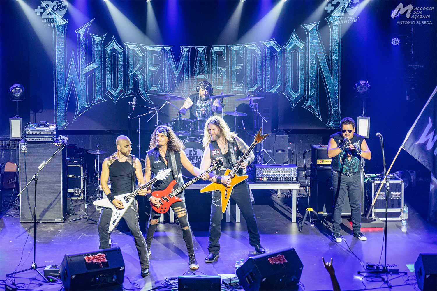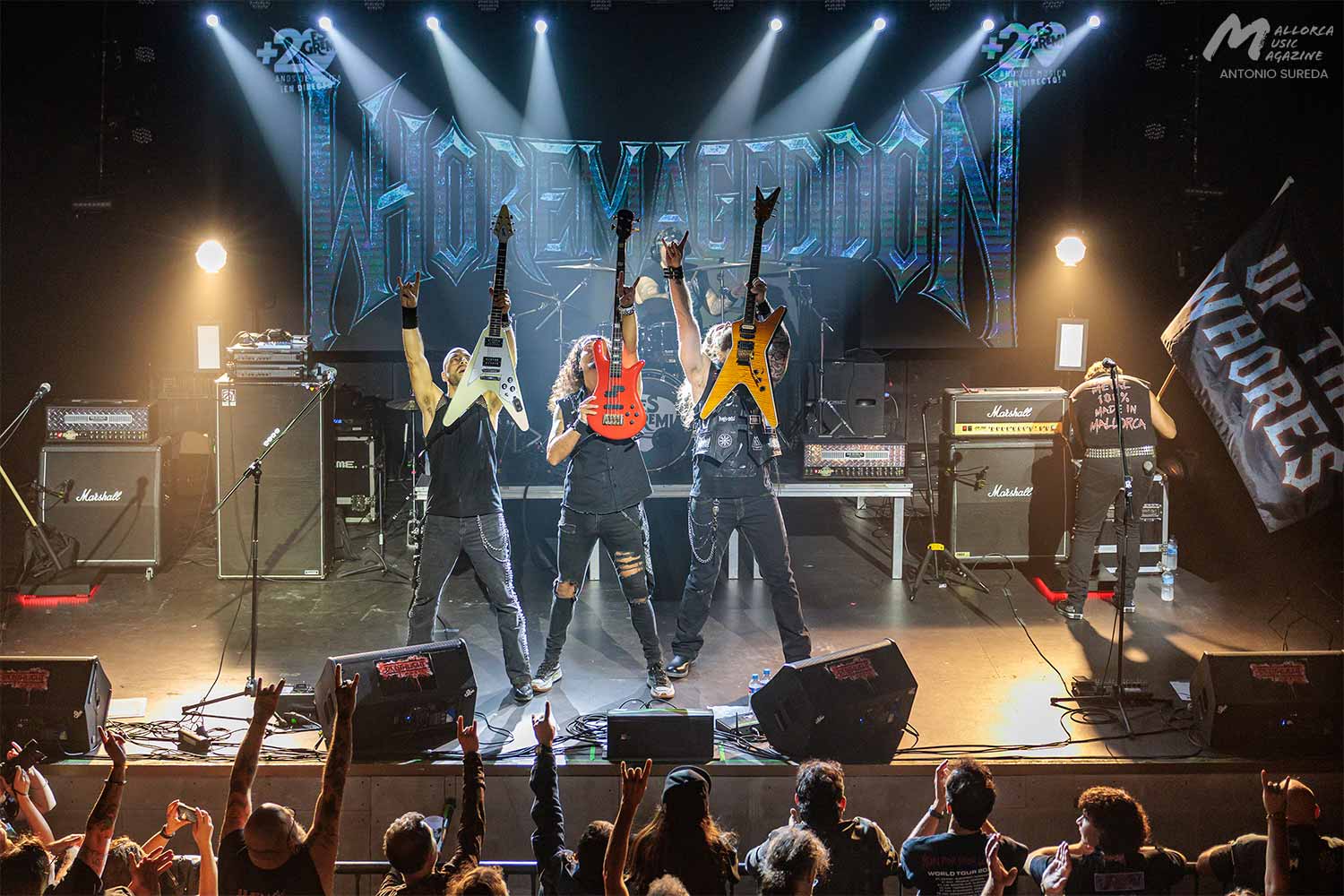 A eso de las 19:50, una intro mostrando fotos de aquellos años ya lejanos en los que, por ejemplo, su bajista Alberto Ruiz era mi profesor de inglés en la ESO, daba inicio al regreso de Whoremageddon. La banda capitaneada por Jaume Vilanova saltó con ganas al escenario a dar una buena dosis del heavy metal cachondo que les caracteriza y lo hizo con dos clásicos como «Vendràs amb jo» y «Meat Axe». Todo ello con una puesta en escena con una garra y una actitud mucho más punzantes que en su anterior etapa de la banda, con un sonido realmente compacto y una escenografía elaborada sacándole todo el jugo al escenario de la sala.