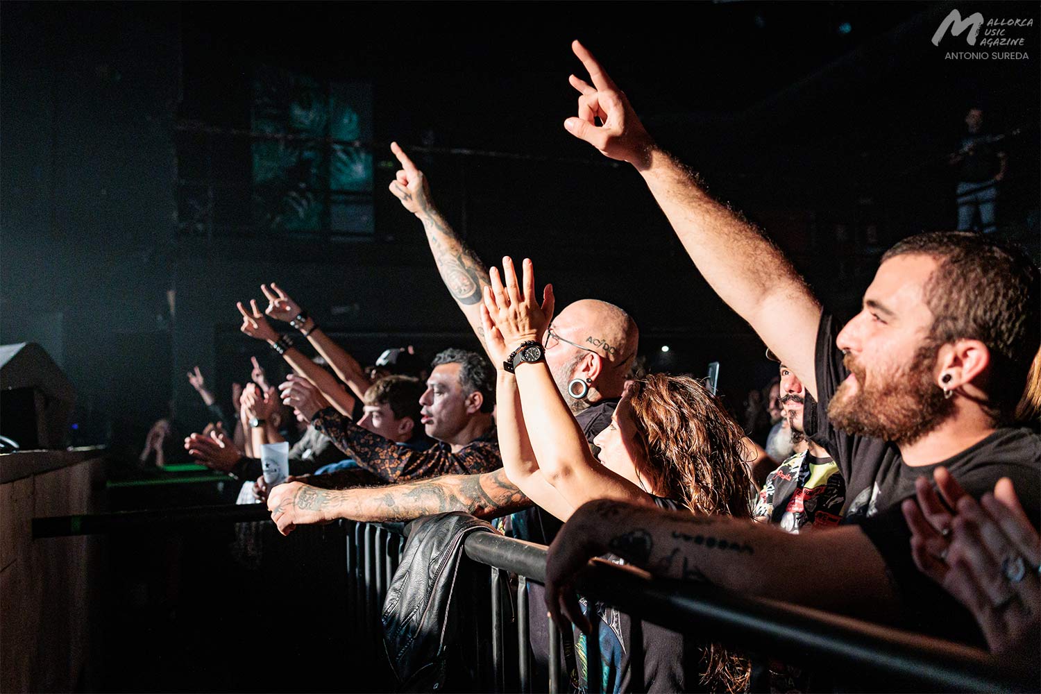 Hubo tiempo de presentar temas nuevos como, según Jaume, su primera canción satánica «Un pa amb oli amb el dimoni», con unas curradas melodías de guitarra de Pablo Pérez y Tomeu Moyà, y su nuevo himno «Up The Whores», con el que acabaron de levantar al público que empezaba a poblar la sala mientras Jaume ondeaba la bandera por encima de nuestras cabezas. Ahí temí por la integridad del equipo de la sala, pero no pasó nada. Todo en orden. En el poco tiempo que tenían aún pudo caer otro clásico como «Love Beggar», seguido de «Guirassic Park» antes de cerrar en alto con uno de sus primeros temas, «We Rock Hard». Un muy buen bolo en el que Whoremageddon demostraron que han vuelto más heavys, brutos y borrachos que nunca. Y yo que me alegro.