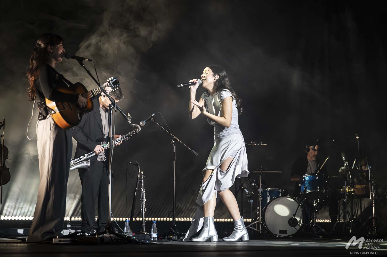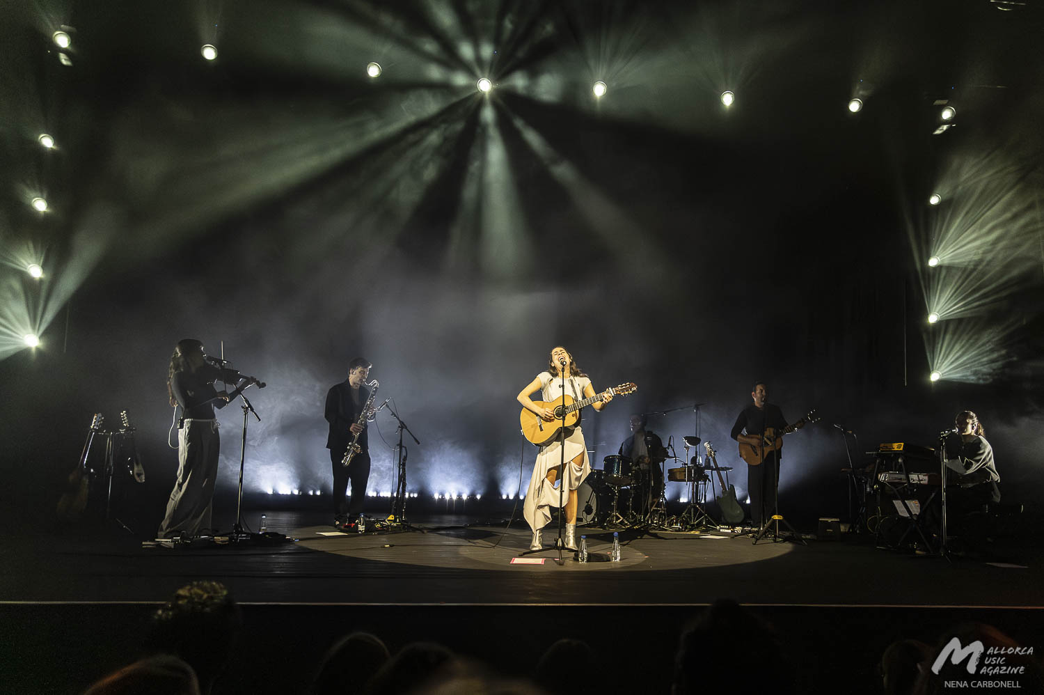 Tras un cambio de fecha, el concierto de la canaria Valeria Castro del pasado jueves logró colgar el cartel de “entradas agotadas” en el Trui Teatre de Palma. La intérprete regresaba a los escenarios tras una ausencia por temas de ansiedad, debida a una gira de más de ochenta y dos conciertos en más de una decena de países, con un segundo trabajo discográfico de título casi premonitorio: «el cuerpo después de todo» (la artista titula discos y canciones en minúsculas), que marca sin duda una nueva etapa en la fulminante carrera de esta joven artista. Castro subía a las tablas bien arropada por su banda habitual: Meritxell Neddermann (teclados y coros), María de la Flor (guitarra, violín, ronroco y coros), Carles Campi Campón (bajo y guitarra española), Borja Barrueta (percusión) y Joaquín Sánchez (clarinete bajo, clarinete y flauta). Minutos antes subía a escena la interprete de Felanitx Mar Grimalt, a quien acompañó Carles Medina al saxo alto y guitarra acústica, cuyo estilo de folk melancólico encajaba muy bien en el cartel, a pesar de que el aforo no se llenó hasta minutos más tarde.